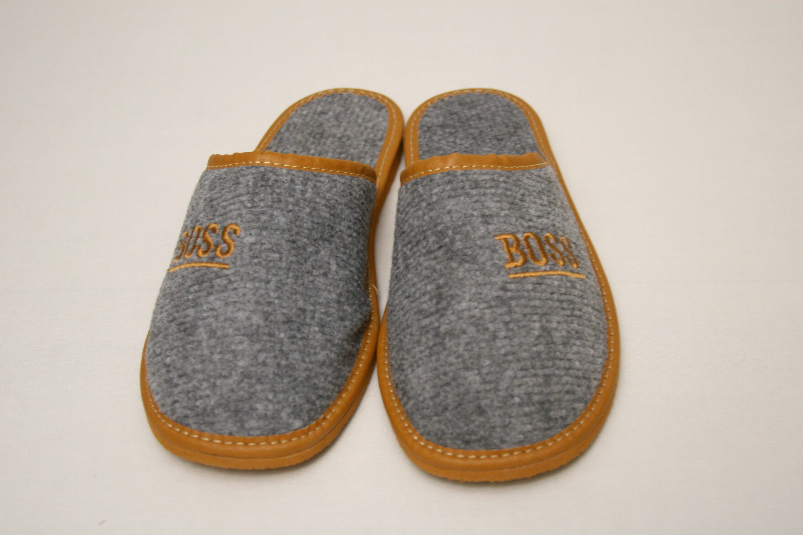 Nowoczesne Męskie filcowe kapcie domowe dla Panów z napisem BOSS