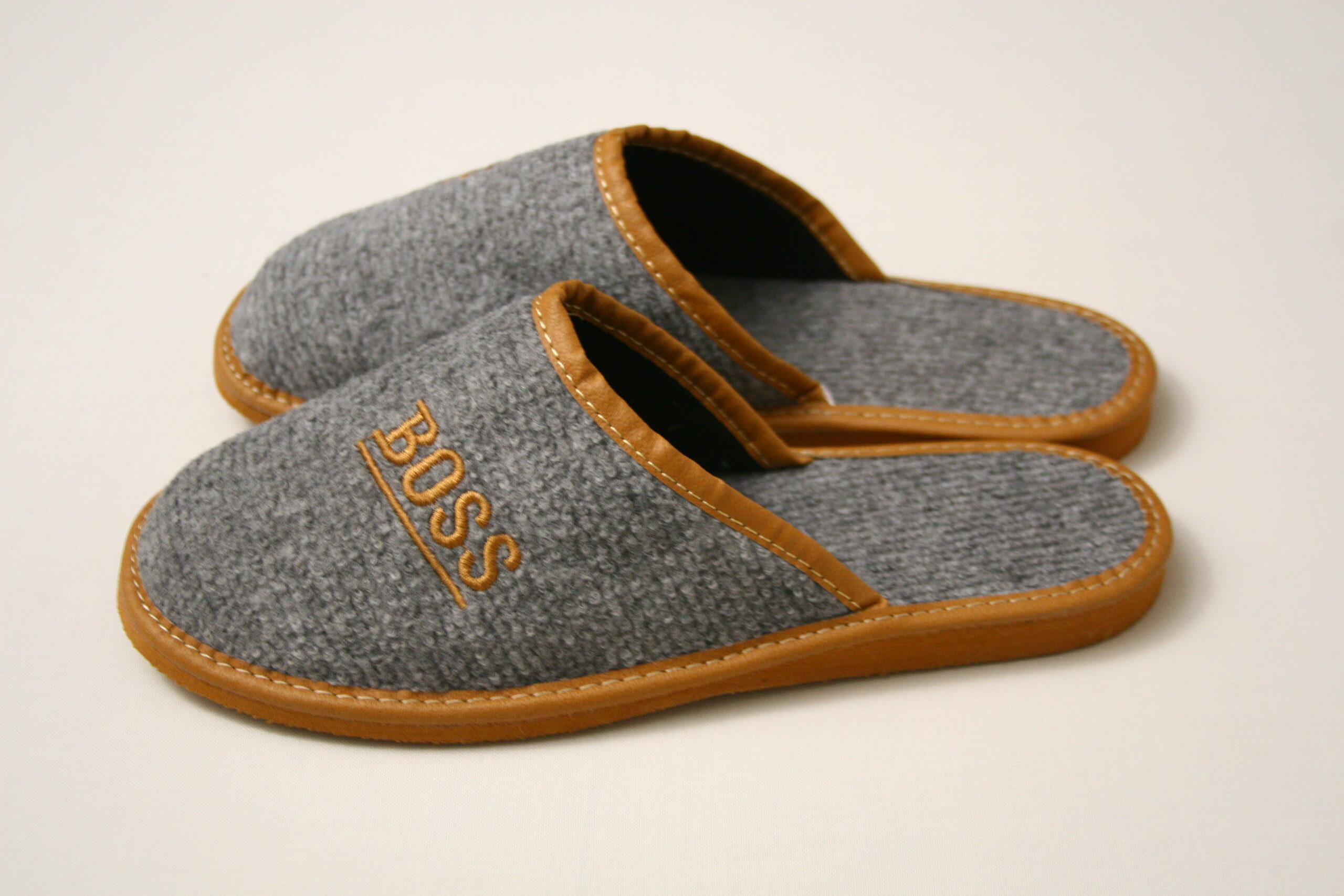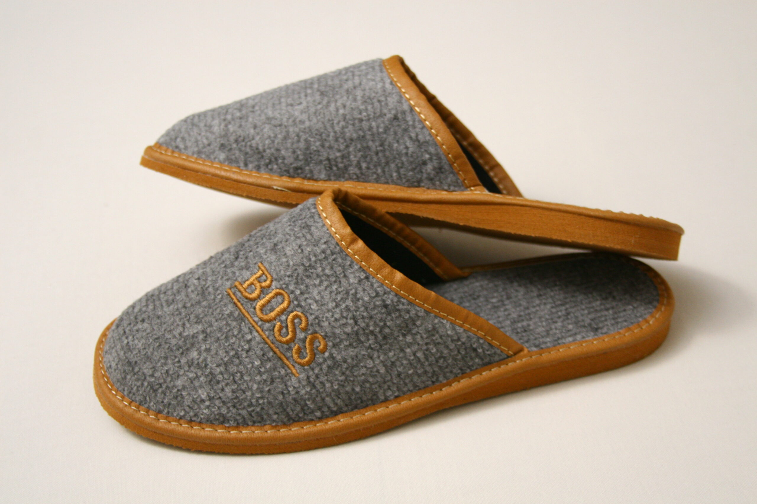 Nowoczesne Męskie filcowe kapcie domowe dla Panów z napisem BOSS.