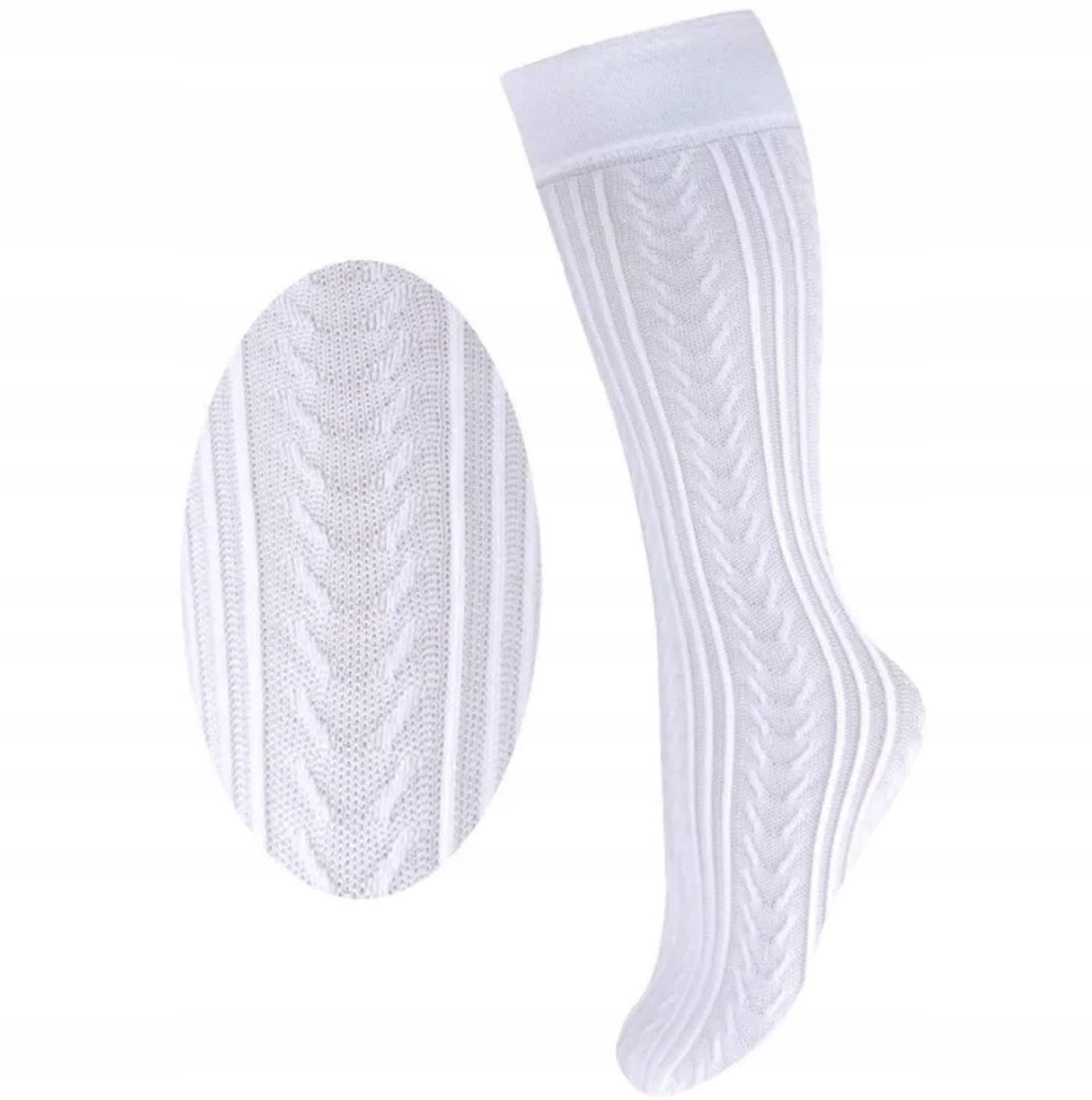 Podkolanówki Białe Mikrofibra 3 D Milusie wzór Jodełka