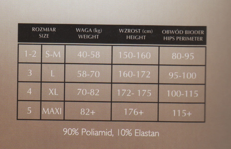 - Skład: 90% poliamid i 10% elastan